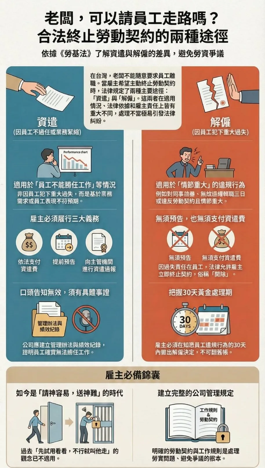 合法終止勞動契約的兩種途徑 依據《勞基法》了解資遣與解雇的差異,避免勞資爭議
